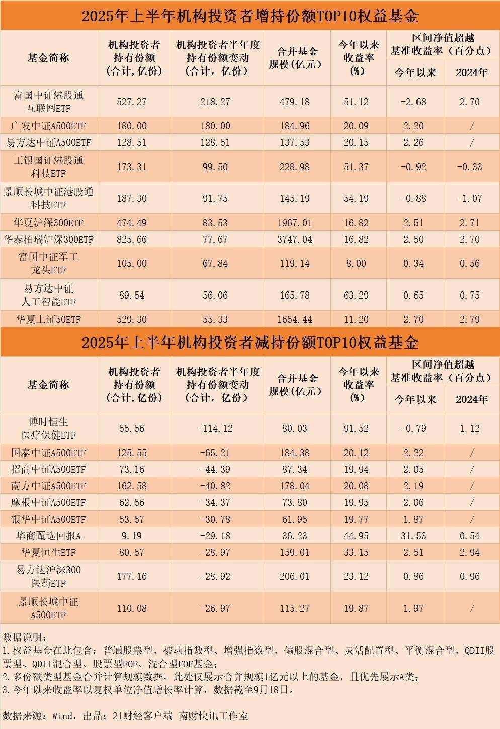 看机构投资者持有份额变动:港股通科技主题ETF疯狂“吸金”从机构投资者持有情况变动来看,上半年机构投资者增持份额最多的权益基金是富国中证港股通互联网ETF,被增持份额超过218亿份。具体来看,其前十大持有人中,中国平安财产保险股份有限公司、富国中证港股通互联网ETF联接A分别对其增持超过26亿份、20亿份。而从全市场来看,截至9月15日,今年以来该ETF已获超500亿元资金净流入。