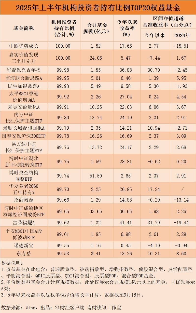 看机构投资者持有比例:机构成多只区域主题基金购买主力上半年,机构持有比例较高的权益基金中,既有追求主题收益的产品,也有侧重稳健回报的产品,覆盖了从高弹性主题到低波动稳健型的不同风险收益区间。