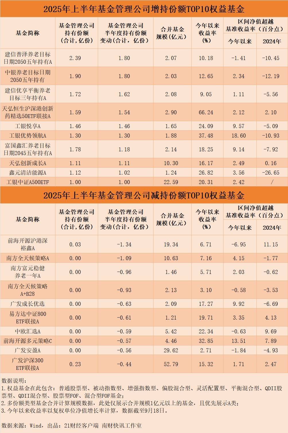 此外,上半年基金管理公司减持份额TOP10权益基金中,广发成长优选、易方达中证800ETF联接A、中欧汇选A、前海开源多元策略C、广发安盈A等5只基金也遭“清仓式”减持。